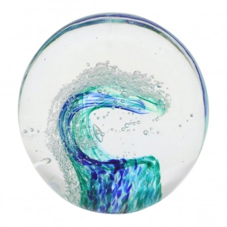 Presse papier sulfure en Verre rond en forme de Disque 10cm Design Vague.