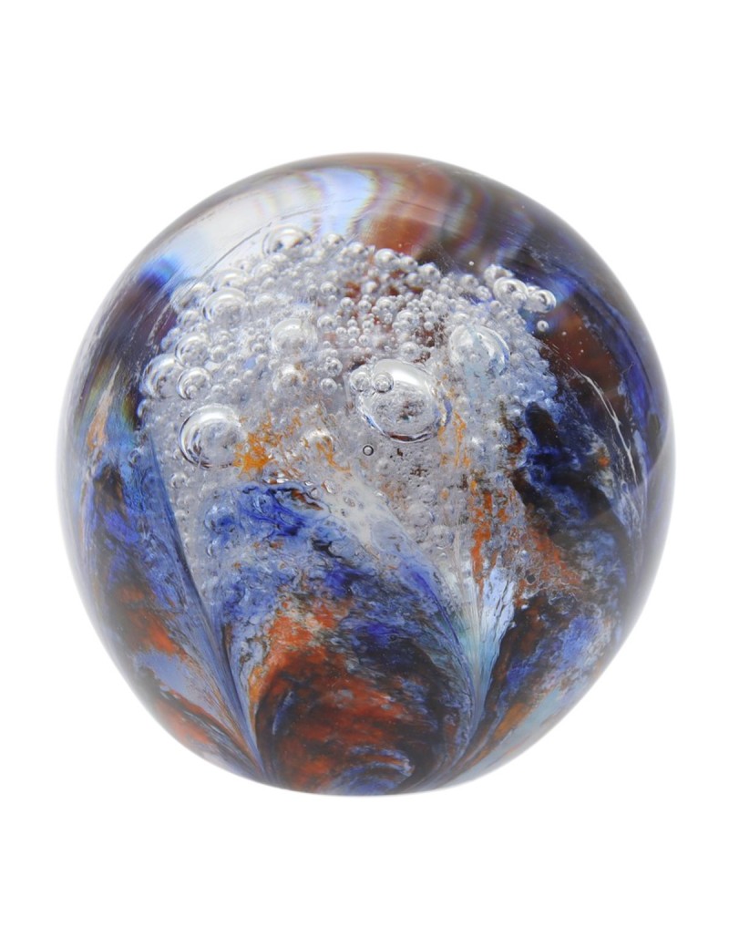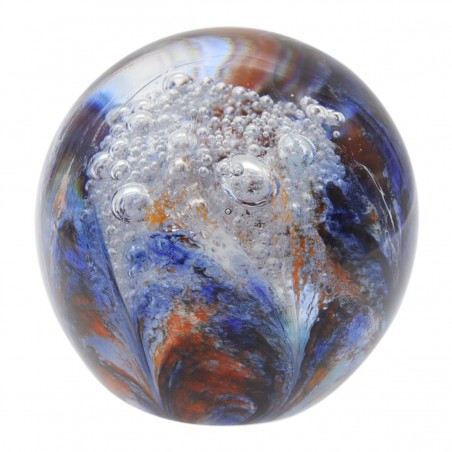 Décoration espace Bureau Bibliothèque, Sulfure boule en Verre de 9cm couleur Bleu Brun Blanc.