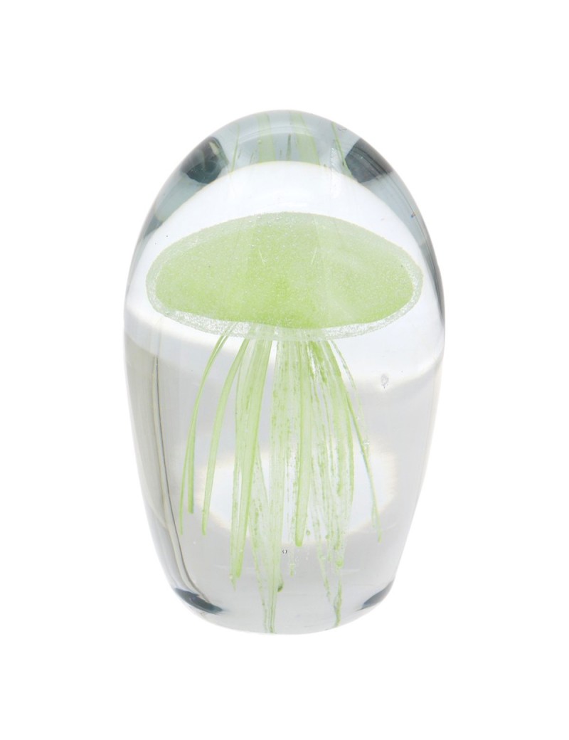 Presse Papier en Verre forme Ovale de 11cm Design Méduse Vert clair