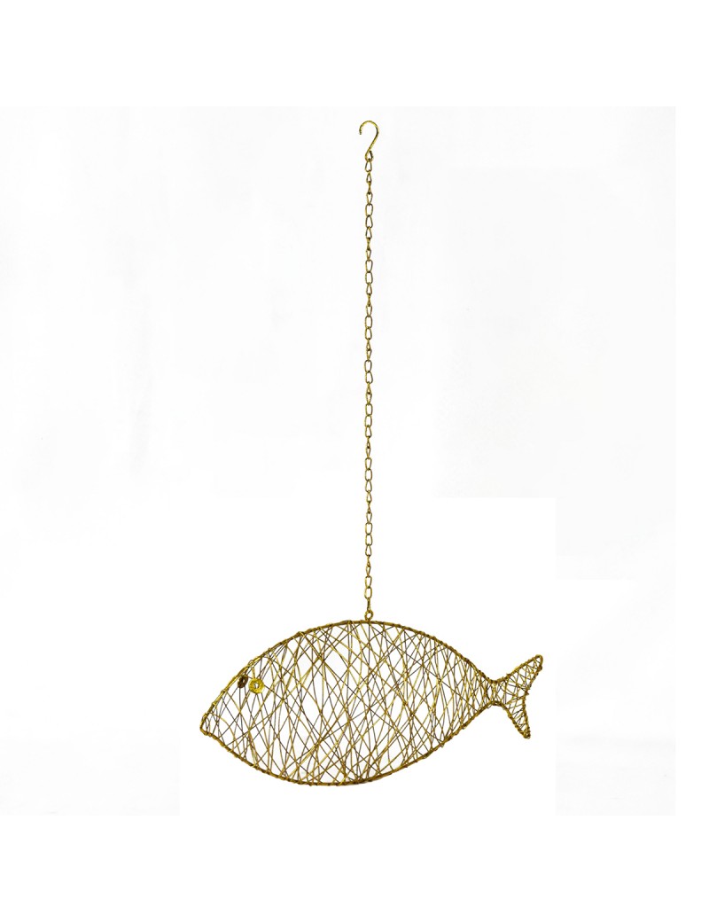 POISSON suspension Décoration Design Métal relief couleur or de 18cm