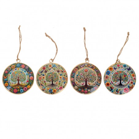 Décoration en métal médaillon à suspendre motif Arbre de Vie en couleur diamètre 8cm ornement original pour Sapin.