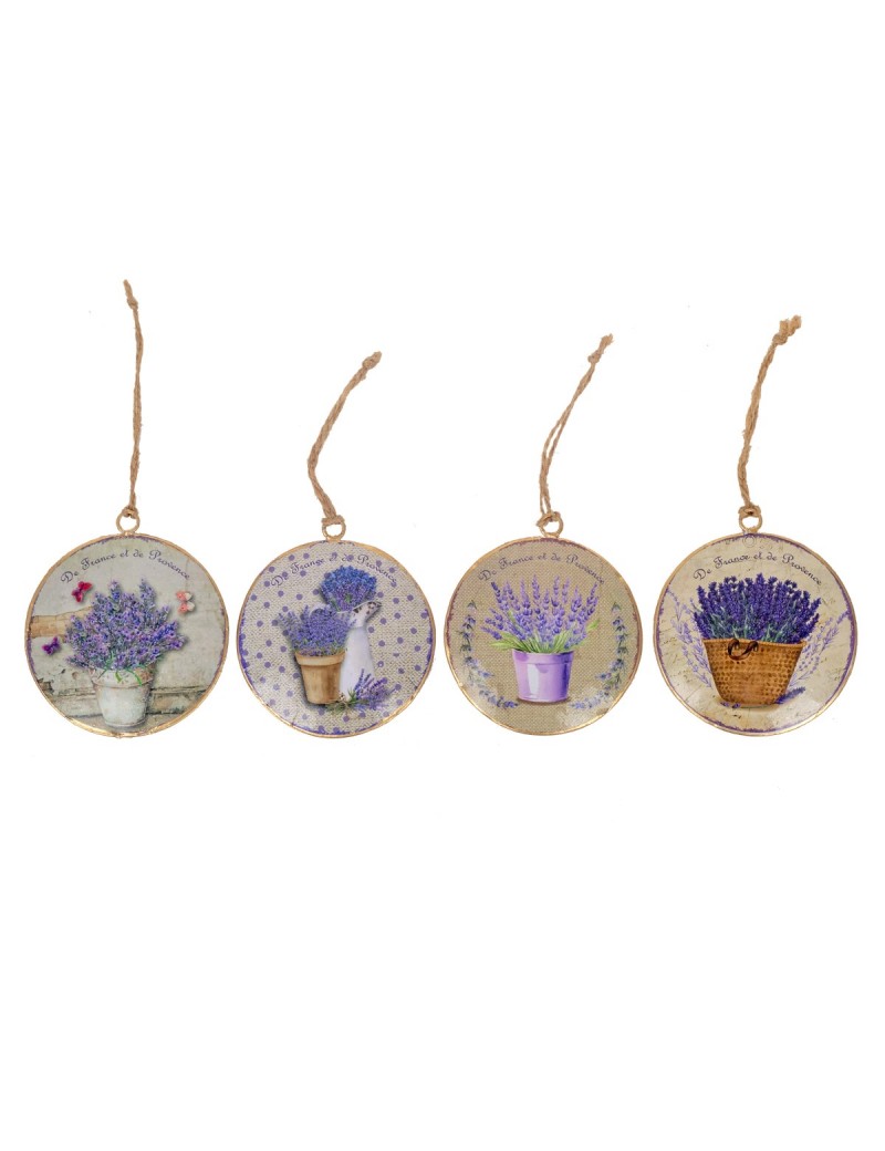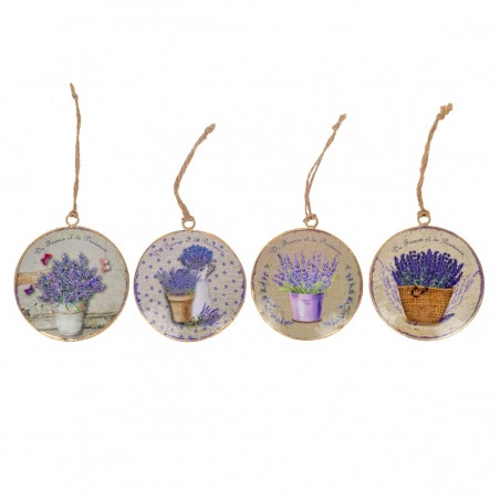 Décoration Sapin, suspension ronde médaillon en métal de 8cm, Design Bouquet de Lavande de Provence.