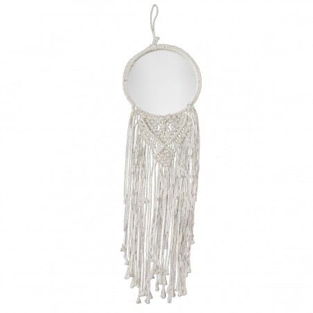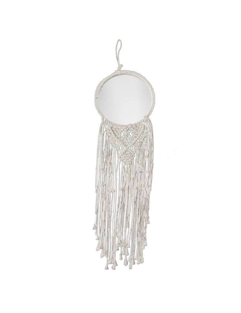 Décoration murale Macramé de 95cm avec Miroir rond de 25cm
