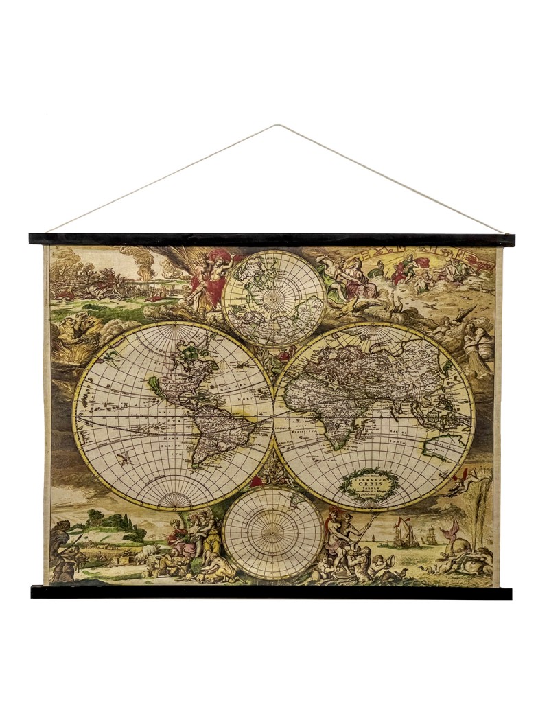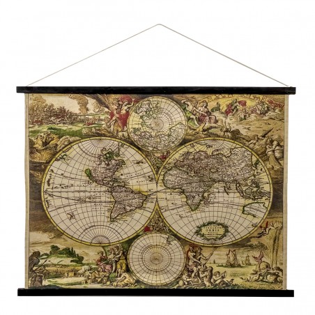 TOILE à suspendre Décoration murale carte du Monde ancienne de 100x75cm