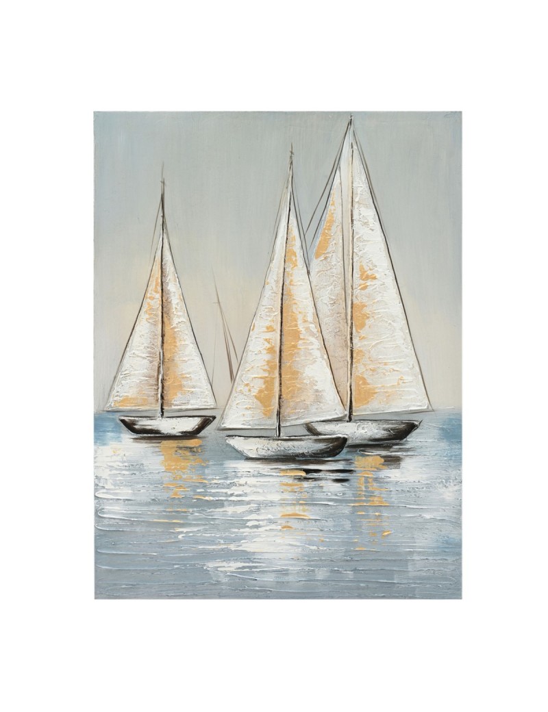 Tableau Toile 90x60cm Voiliers Bateaux couleur Bleu Gris Beige