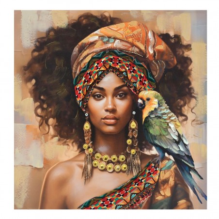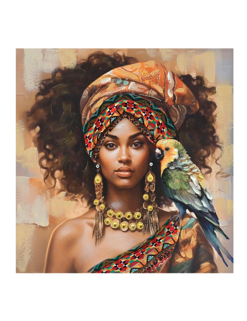 Tableau Toile sur un Cadre bois 80x80cm Femme avec un perroquet