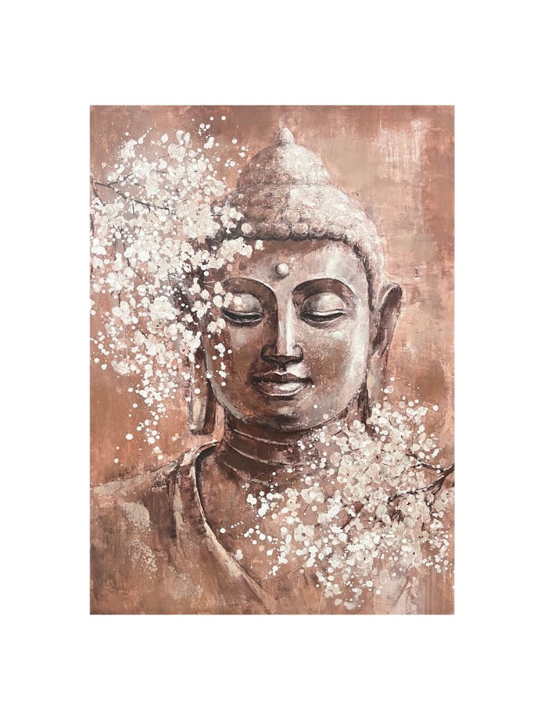 TABLEAU Bouddha couleur Brun Tabac et Blanc Toile de 120x80cm