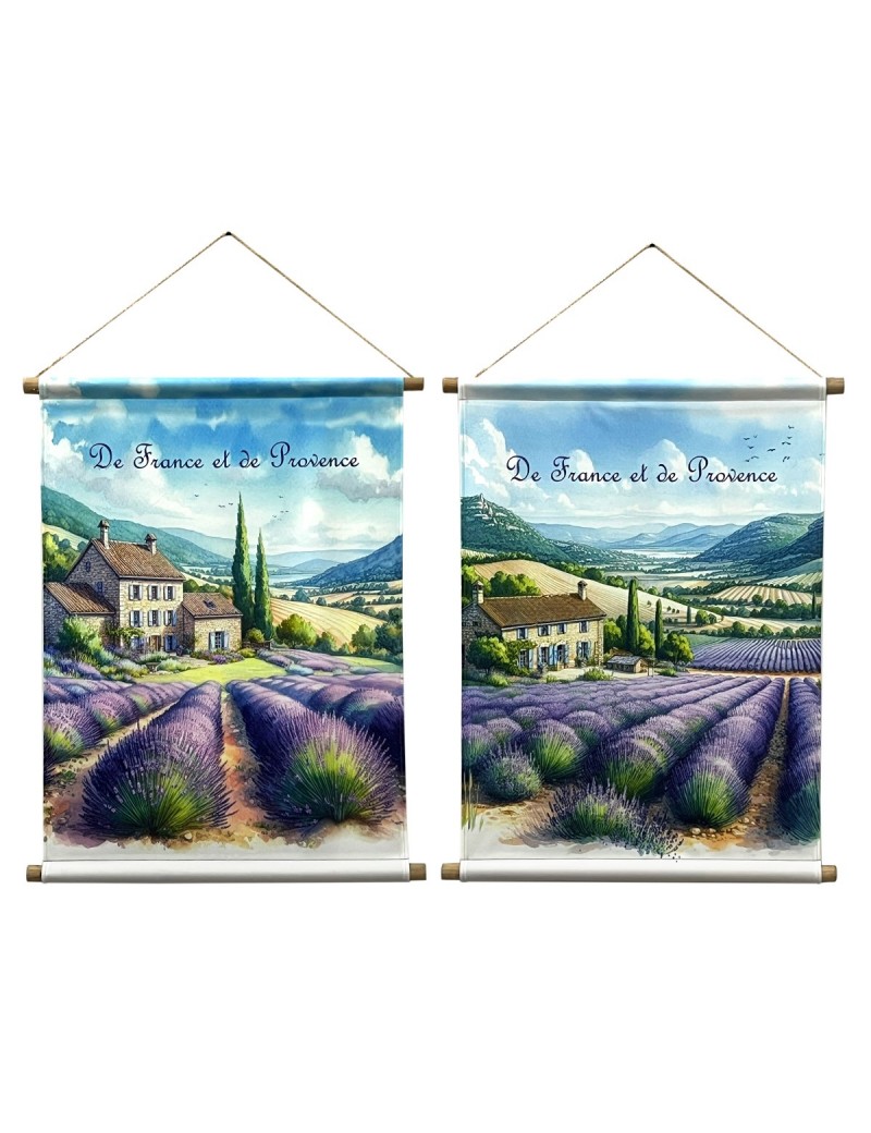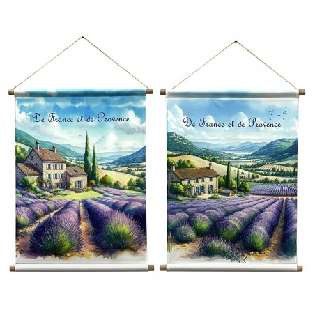 Décoration murale Lavande Provence, grande toile 76x60cm enroulable sur baguettes Bois au Design paysage de Lavande.