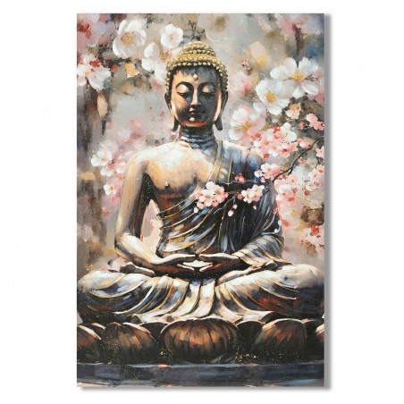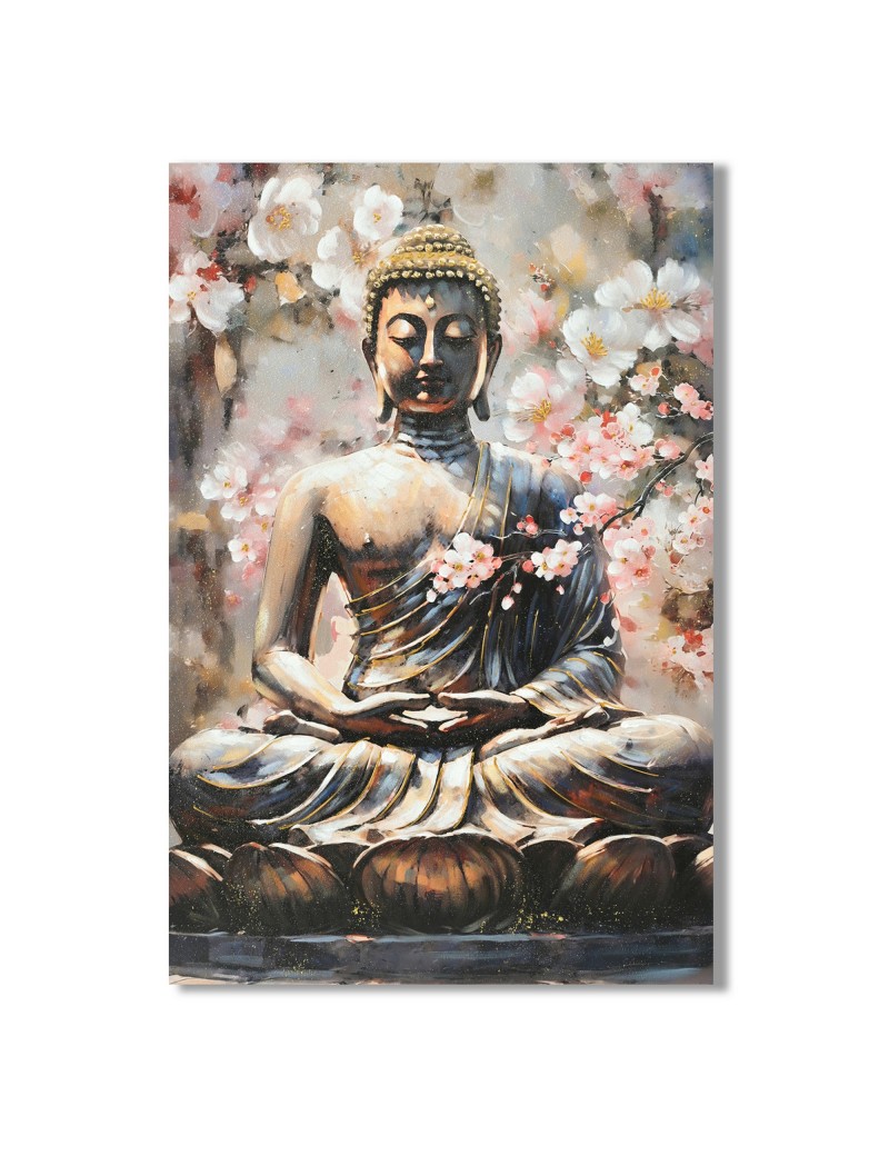 Tableau BOUDDHA assis Déco Fleurs Toile sur cadre Bois de 120x80cm