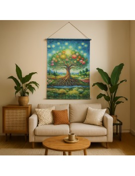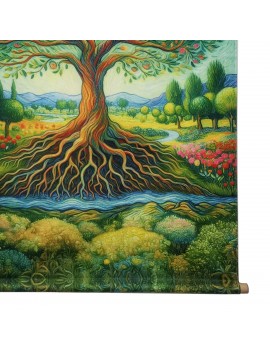 Tableau 120cm Toile enroulable sur Baguettes Bois ARBRE de Vie Vert Bleu