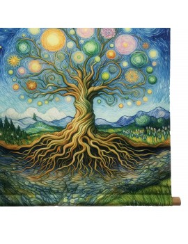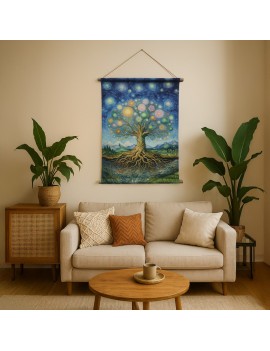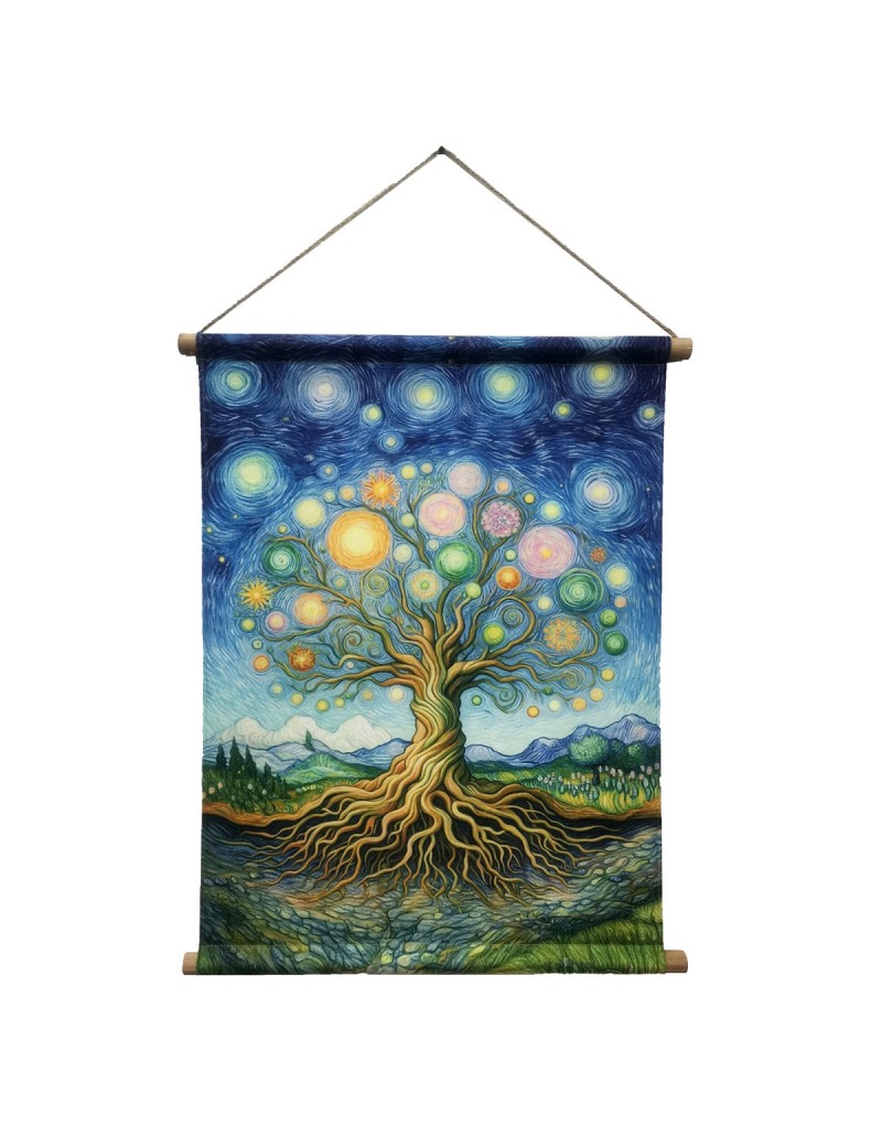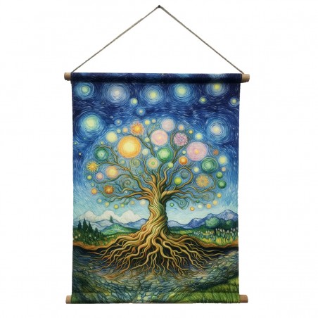TOILE à suspendre ARBRE de Vie en couleur 77cm toile enroulable baguettes bois