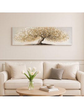 Tableau Toile sur cadre Bois ARBRE tout en largeur 90cm couleur Sienne Or