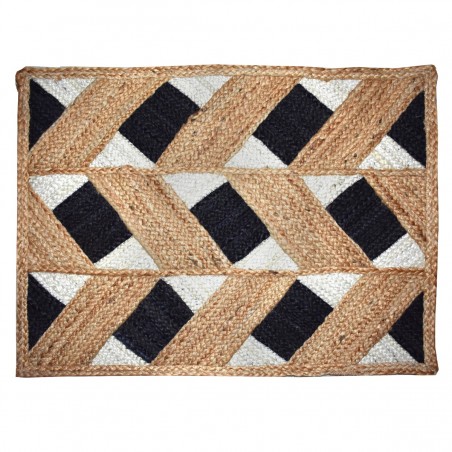 Décoration esprit Naturel, Tapis rectangulaire en Jute couleur Naturel Blanc Noir.