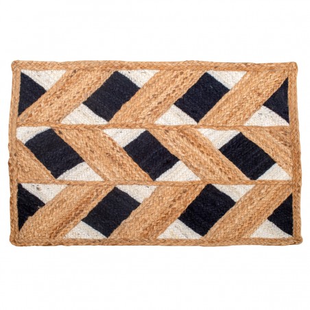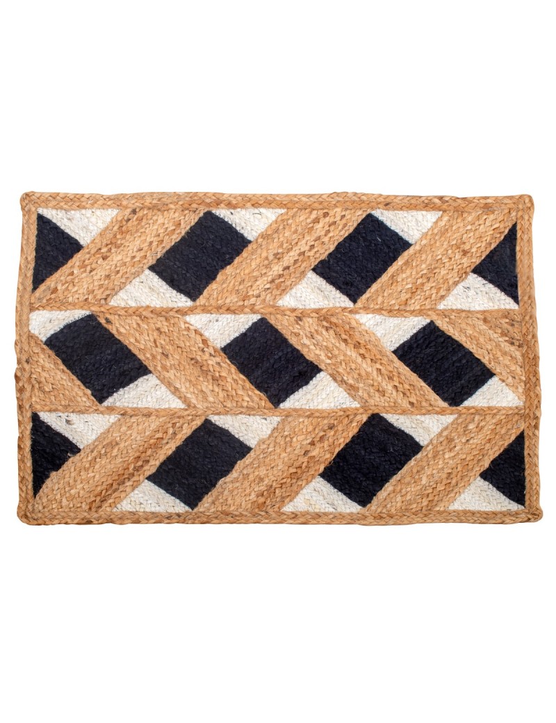 TAPIS rectangulaire de 60x80cm en matière Jute couleur Naturel Blanc Noir