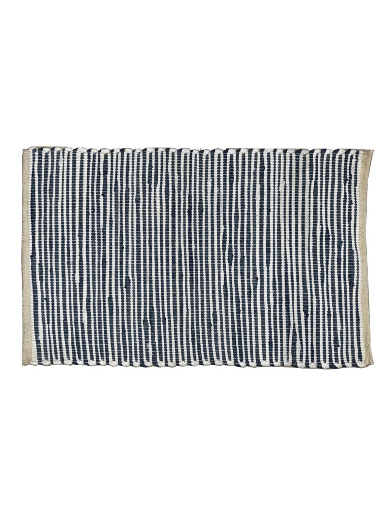 TAPIS rectangulaire en coton de 50x80cm couleur Marine et Blanc
