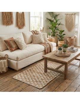 Tapis rectangulaire en Jute 85% couleur Naturelle 80x50cm