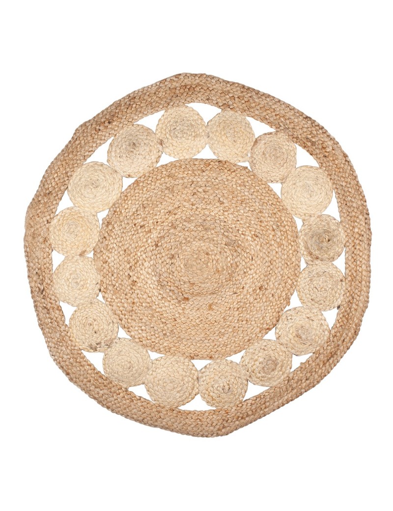 TAPIS Rond en Jute Couleur Naturel et Blanc