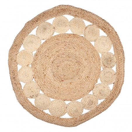TAPIS Rond en Jute Couleur Naturel et Blanc de 90cm
