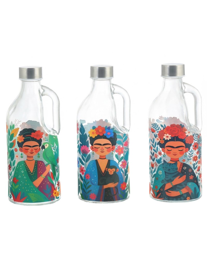 PICHET en Verre 25cm avec Bouchon métal Décoration Frida Fleurs