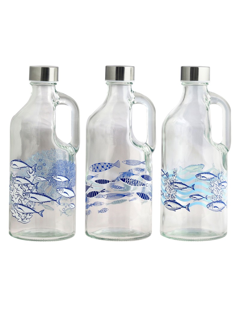 Pichet bouteille en Verre 25cm Décoration Poisson Bleu avec bouchon métallique