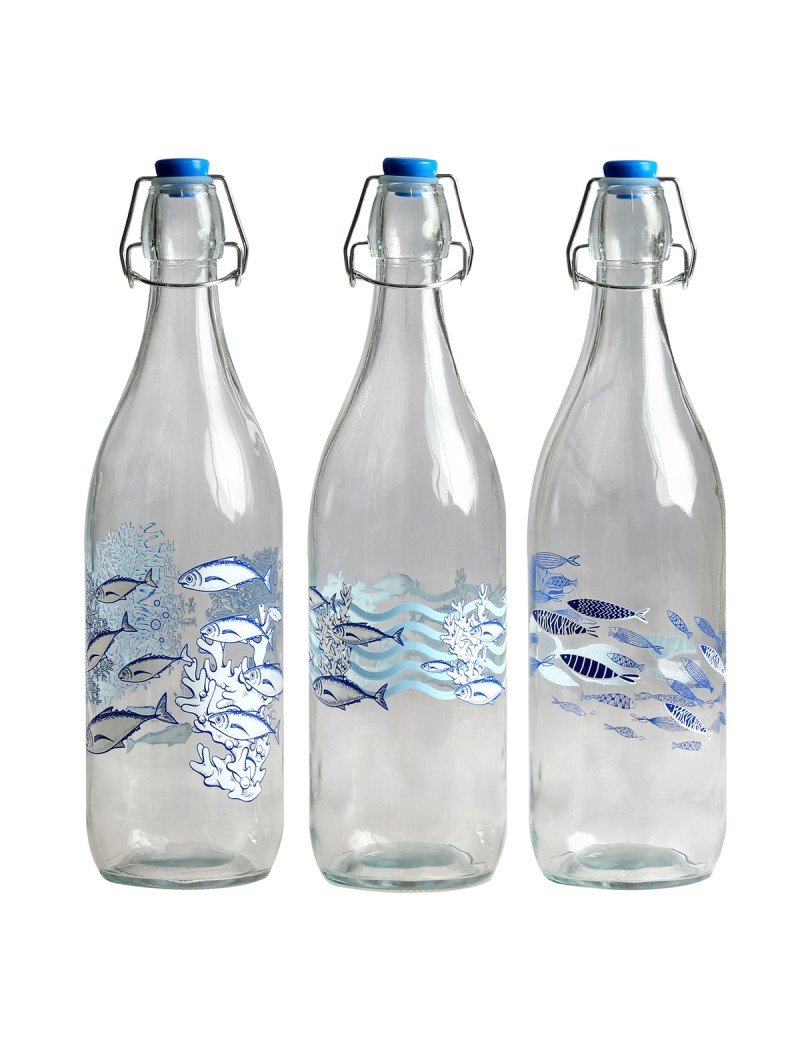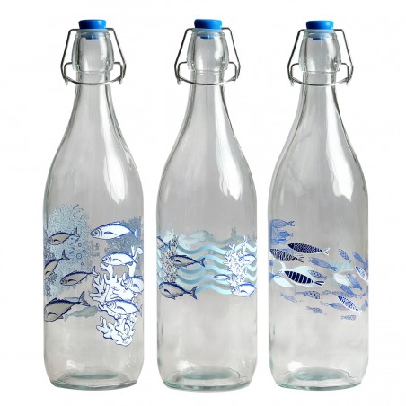 Bouteille en verre 32cm avec bouchon mécanique Décoration Poissons bleu