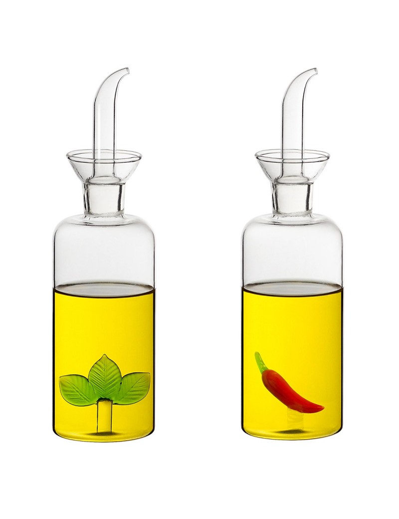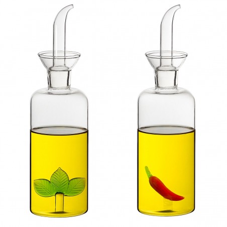 Vinaigrier et Huilier 21cm en verre de 250ml avec Décoration intérieure