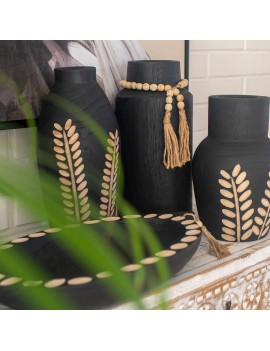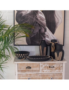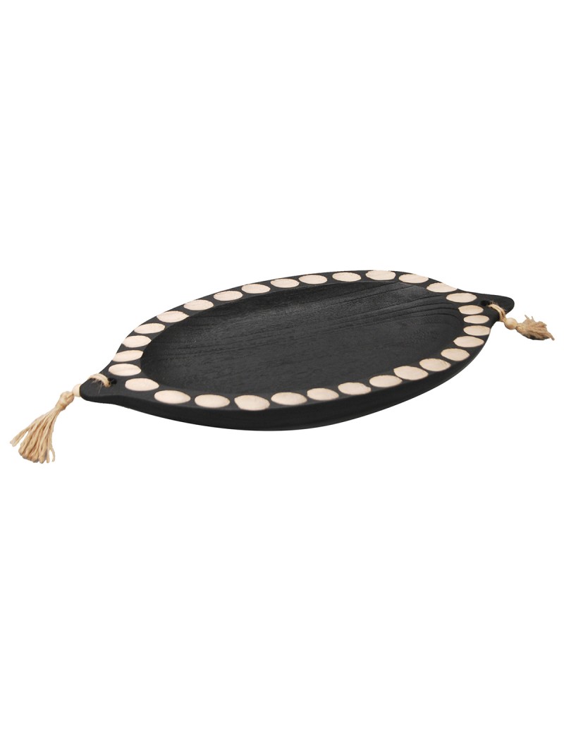 Décoration pratique hall entrée, un Vide Poche en Bois couleur Noir et beige de longueur 44cm de forme Ovale.
