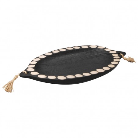 Vide poche Plateau coupe en Bois couleur Noir et Beige forme Ovale de 44cm