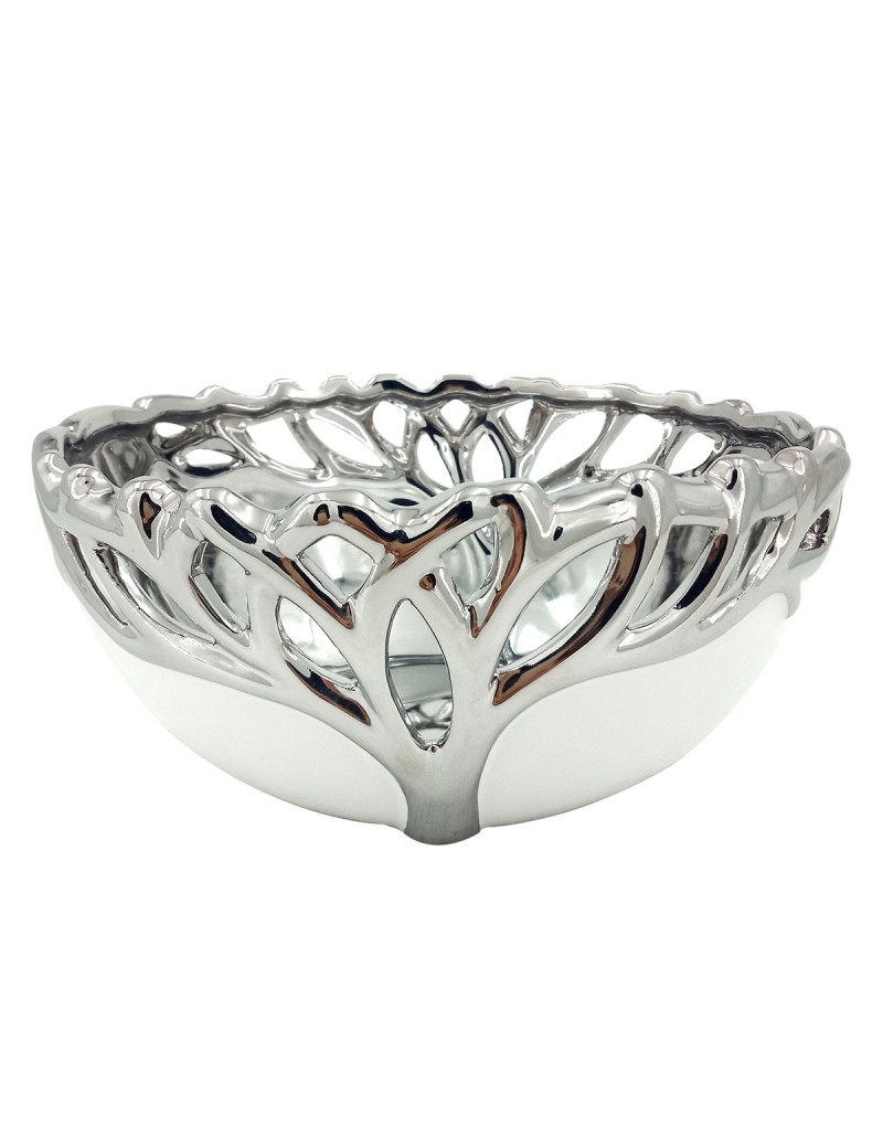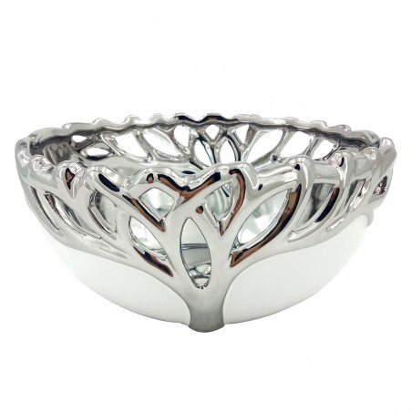 POT Coupe Vide poche en céramique couleur Blanc et argenté Design Arbre branches