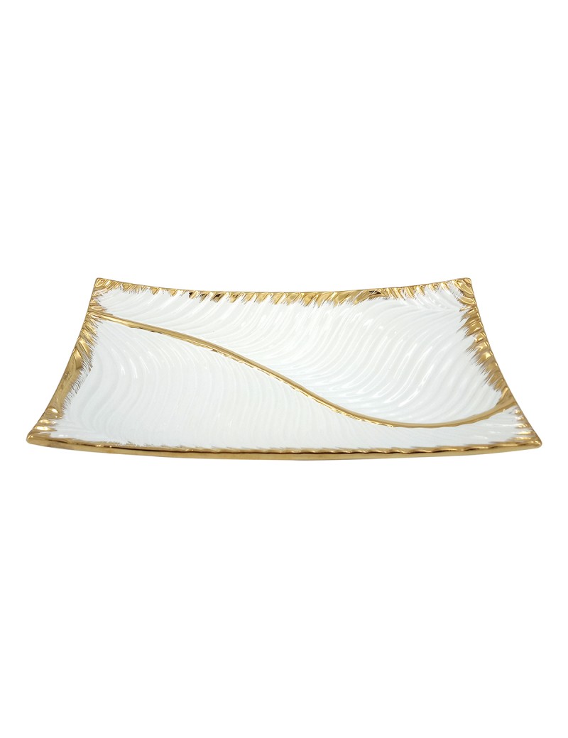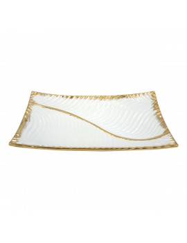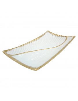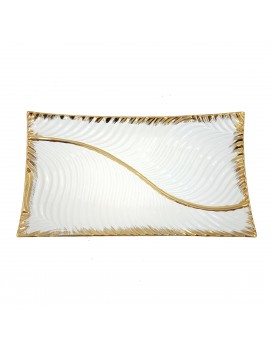 PLATEAU Plat de présentation rectangulaire en Céramique blanc doré