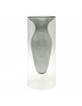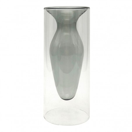 Décoration d'Intérieur Vase en verre en forme de tube, Design transparent et Gris d'une hauteur de 20cm.