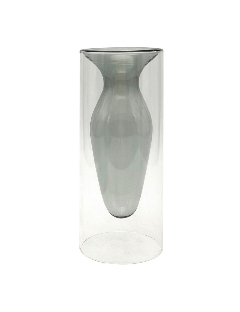 VASE en Verre Design transparent et Gris de forme cylindre 20x8x8cm