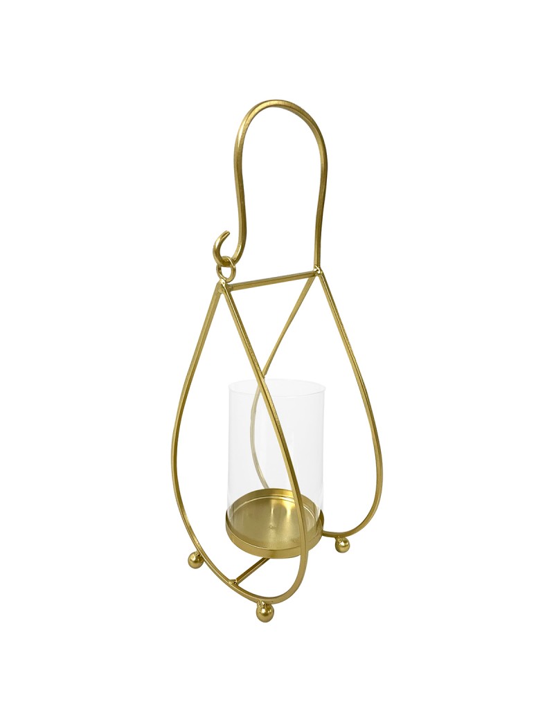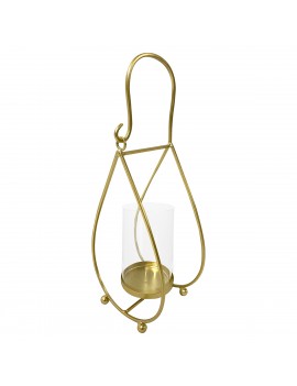 Décoration d'Intérieur un Bougeoir Photophore Design Lanterne moderne en Métal couleur Or et Verre.