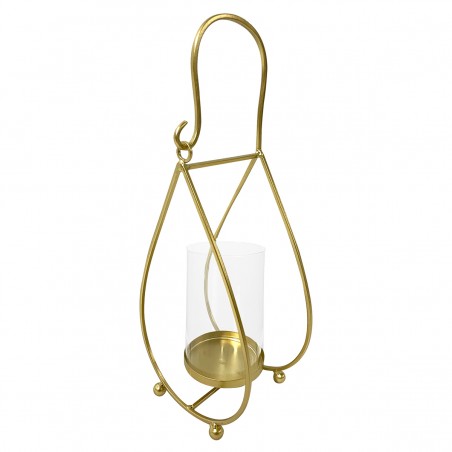 BOUGEOIR Photophore en Métal et Verre couleur Dorée de 44cm