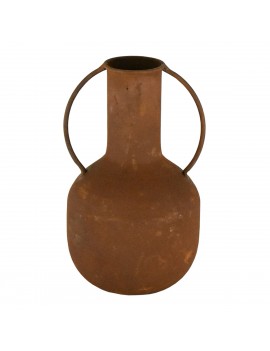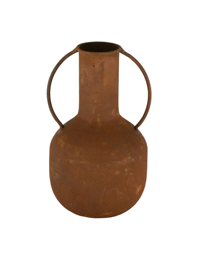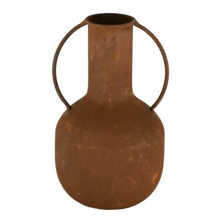 VASE en métal avec 2 anses couleur Brun caramel effet ancien 18cm
