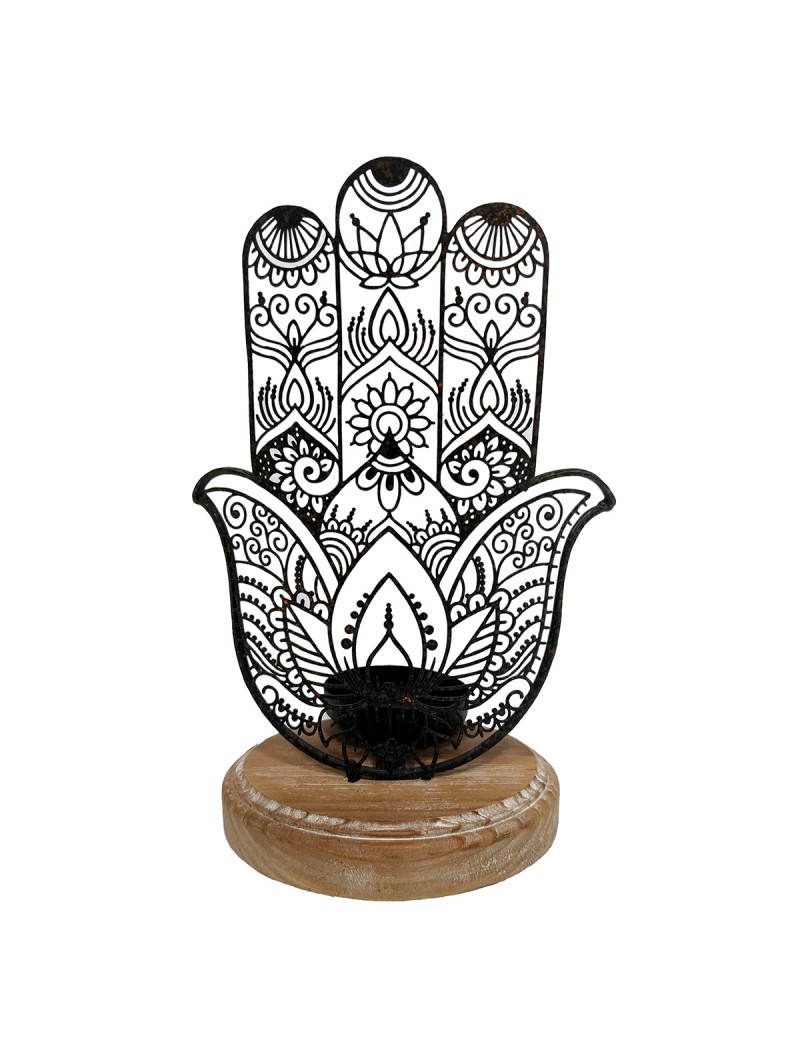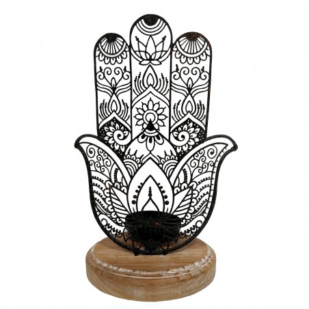 Photophore Tea light en Bois et métal Main de Fatima 23cm