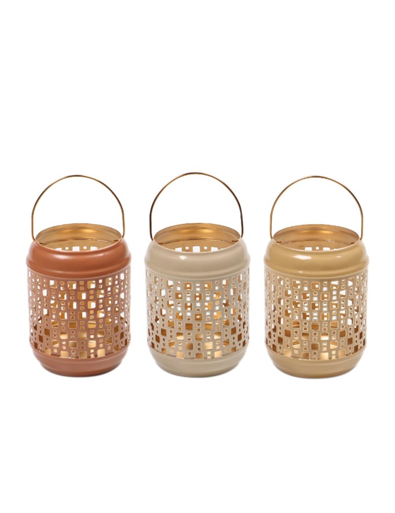 Décoration couleur Chaude, Photophore Bougeoir Lanterne en Métal couleur Cuivre Crème dorée.