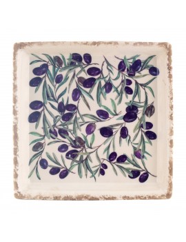 Assiette en céramique de forme carré couleur Beige Décoration Olives noires