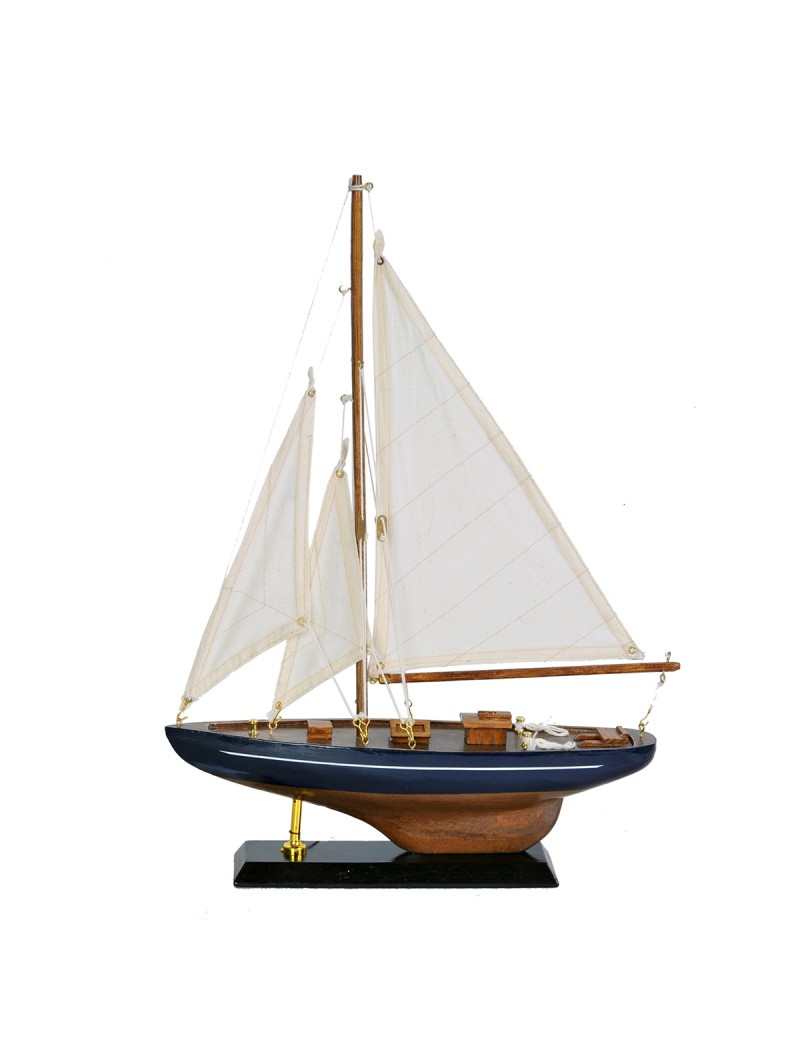 Décoration Collection Objet marin, Bateau Voilier rétro miniature en Bois couleur Marine et Brun.