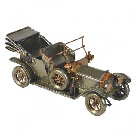 Décoration collection rétro belle époque, Voiture miniature en métal de longueur 27cm couleur Gris kaki Cuivre doré.