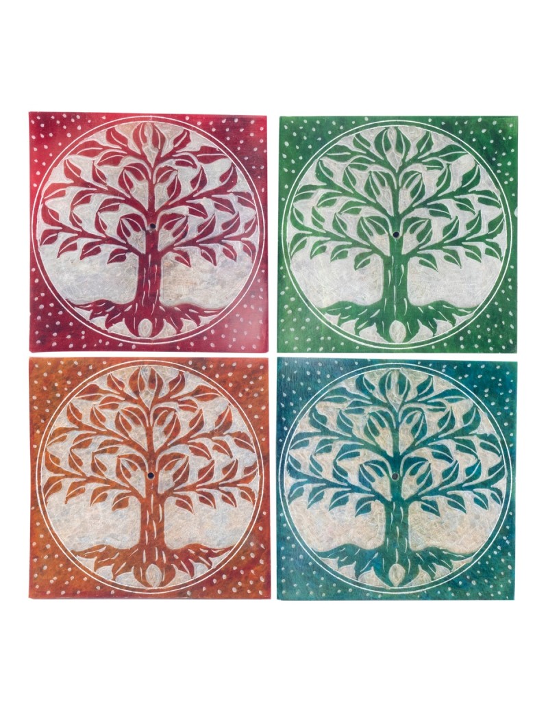 Brûleur d'Encens carré en Grés différente couleur Design Arbre de vie 7cm