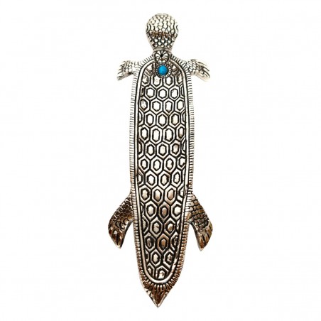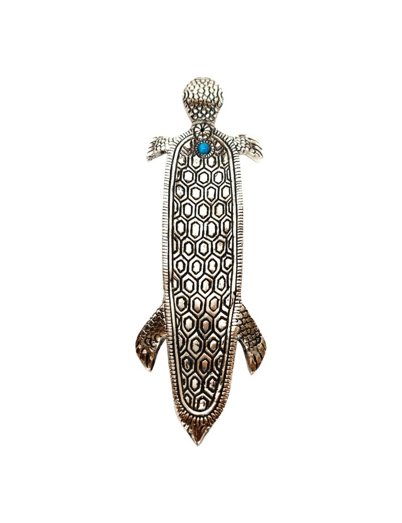 Brûleur support d'encens en métal couleur Argent en forme de Tortue 21cm