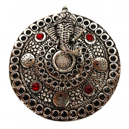 Brûleur d'encens rond en métal Aluminium Décoration Ganesh 10cm