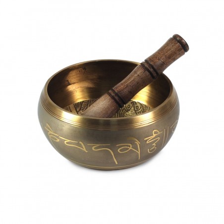 BOL Tibétain chantant en métal avec maillet bois MÉDITATION gravure BUDDHA 11x11x6cm