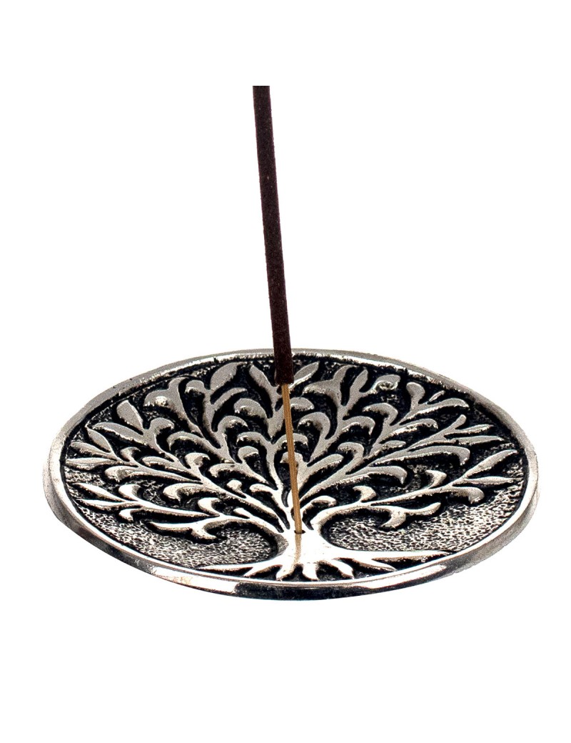 Décoration Arbre de Vie Porte Encens en coupelle sur pieds en Métal Aluminium.