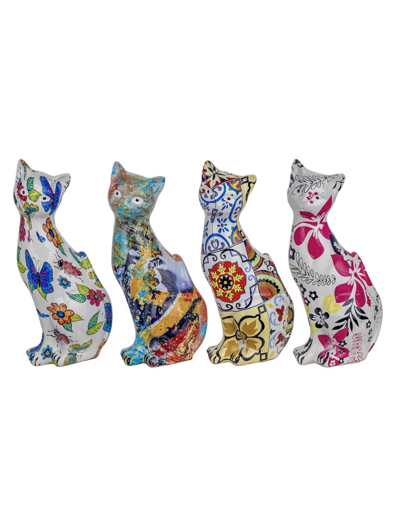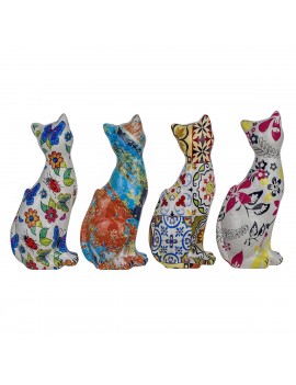 Cadeau Décoration Collection Chat, un Lot de 4 statuettes de Chat assis hauteur 12cm très coloré Design Moderne.