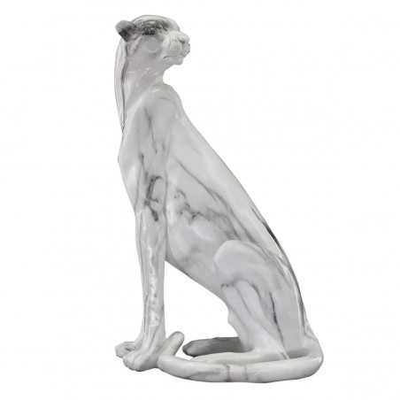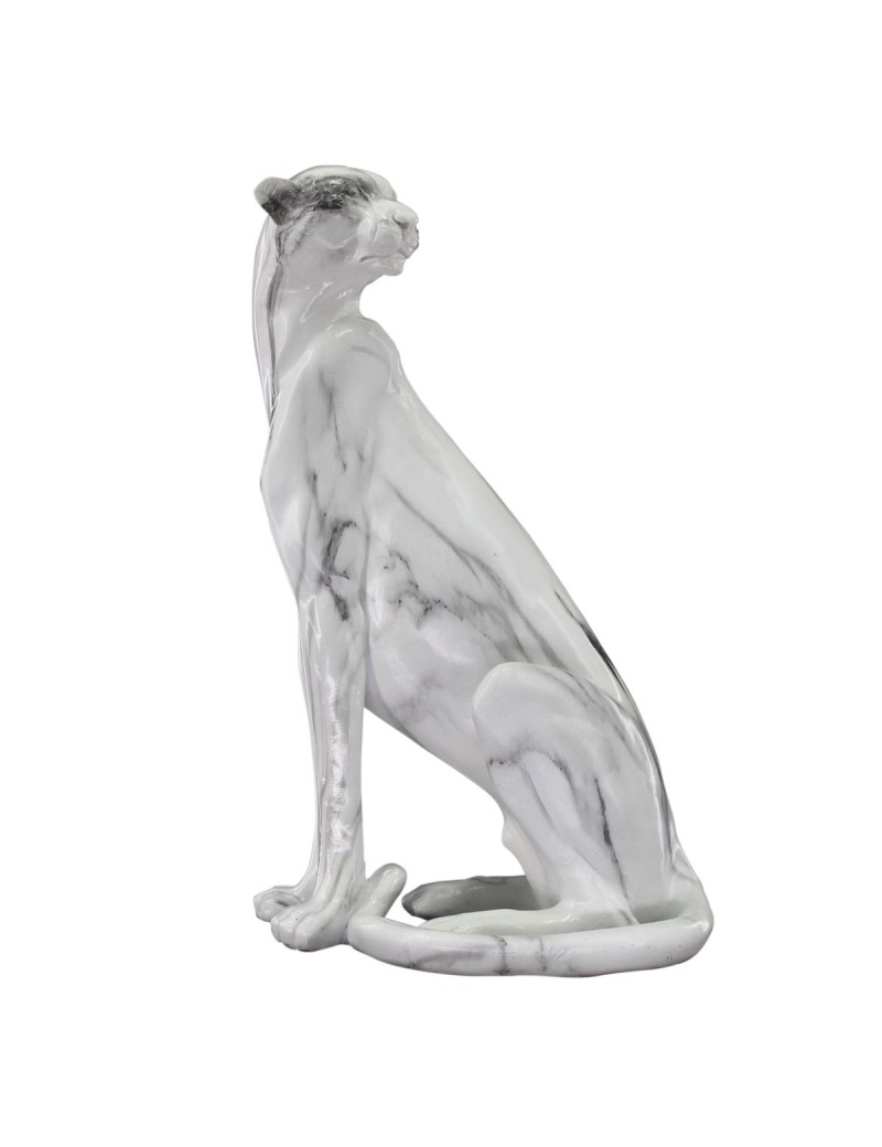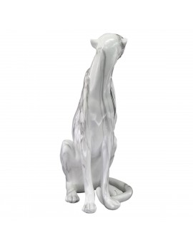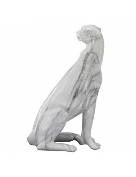 Décoration Statue Panthère Léopard assis, tout en longueur 40cm de hauteur couleur Blanc Gris effet marbre.