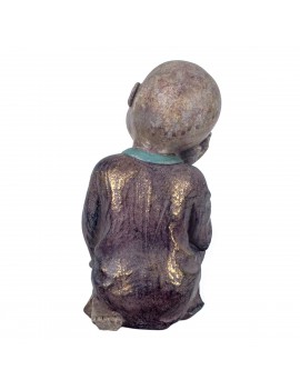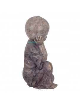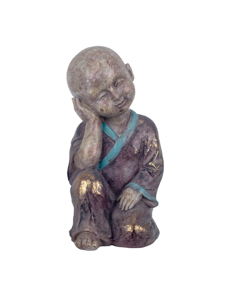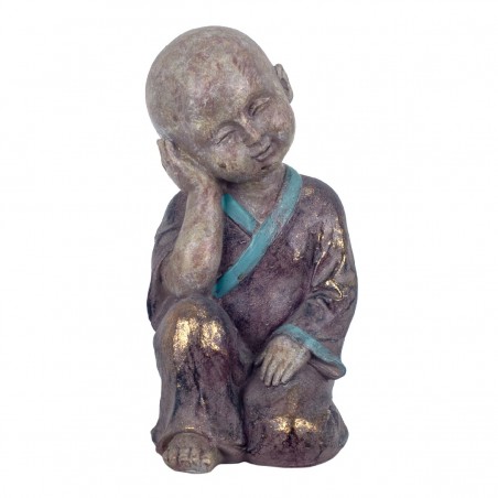 Moine songeur Statue Décoration Bouddha ZEN couleur Taupe et Turquoise
