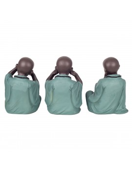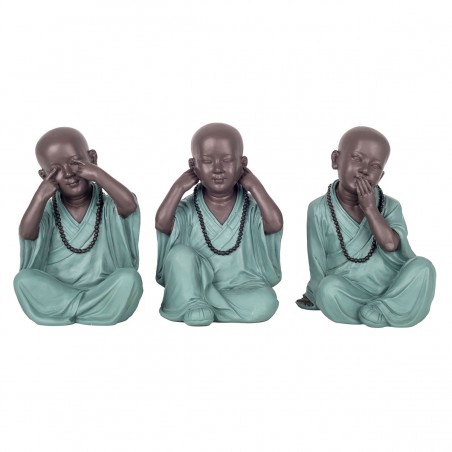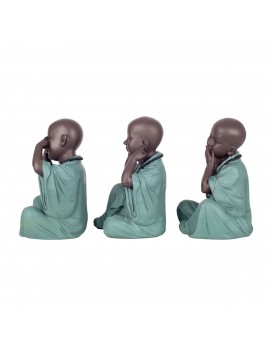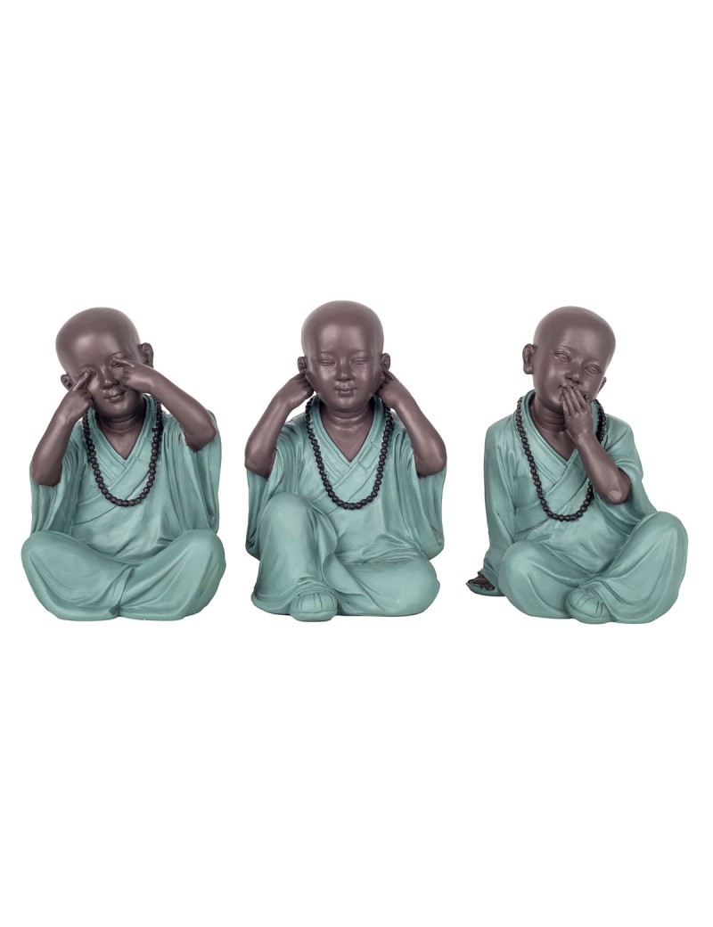MOINE de la Sagesse debout Statue Décoration couleur Bleu pétrole de 25cm