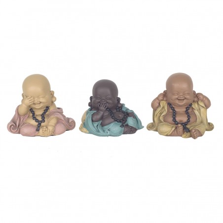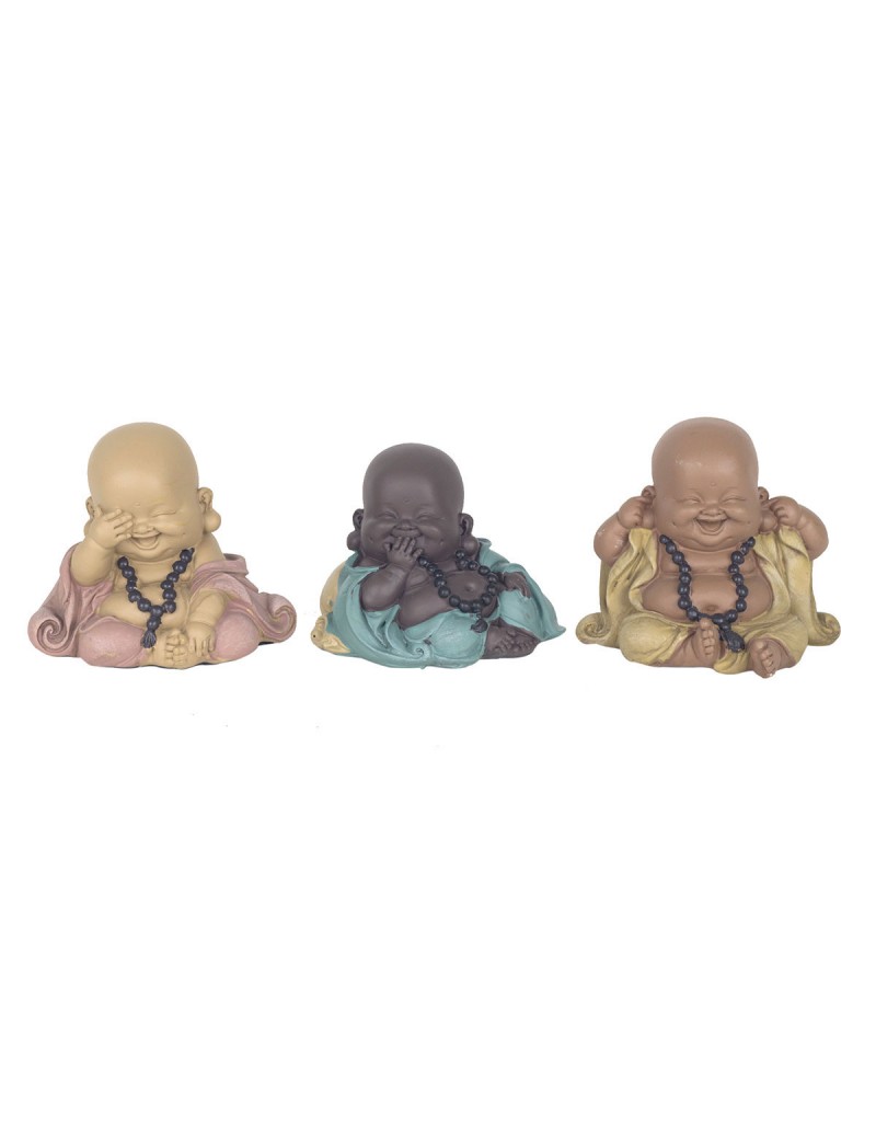 Un lot de 3 moines bouddhiste rieur, de la sagesse, rien vu, rien entendu, rien dit en polyrésine.